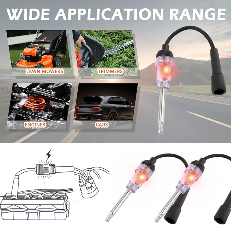 COMPATIBLE WITH VARIOUS IGNITION SYSTEMS - This tester works with traditional spark plug wires, coil packs, and coil-on-plug (COP) ignition designs. Its universal design fits most gasoline-powered vehicles without the need for vehicle-specific adapters.