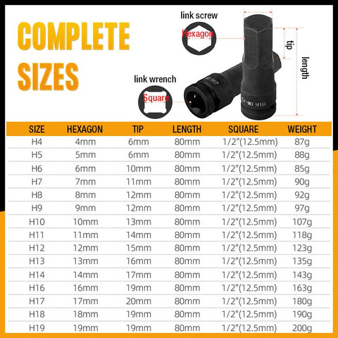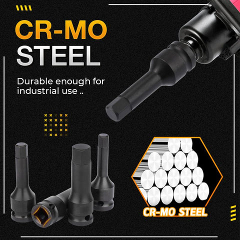 Quickly insert into a 1/2" pneumatic wrench, remove hexagon screws in seconds and improve work efficiency.