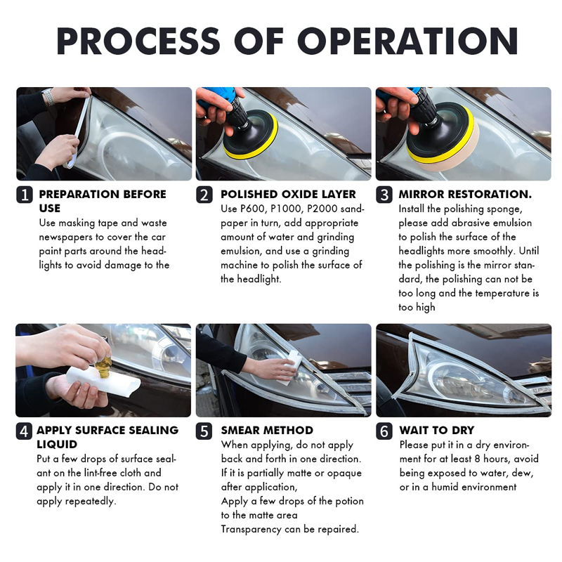 LONG-LASTING PROTECTION: Features a ceramic coating formula with high transparency and strong adhesion. Helps prevent future yellowing, oxidation, and scratches, keeping headlights clearer for longer and extending the lifespan of your lights.