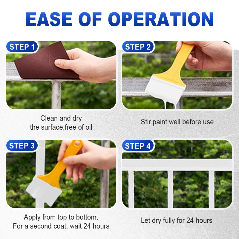 NO NEED TO REMOVE RUST, USE DIRECTLY - Save time and effort with a paint that can be applied directly onto rusted metal surfaces. Its strong rust-inhibiting formula allows you to skip the usual rust removal step, accelerating project completion while ensuring thorough protection and a clean finish.