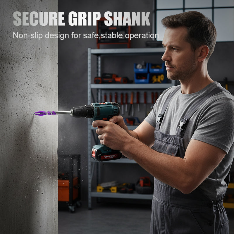 ANTI-SLIP HEX SHANK: Equipped with a hexagonal shank, this drill bit ensures a secure and firm grip in various chuck types without slippage. This stable connection guarantees safe operation and compatibility with a wide range of power drills, enhancing user control and precision.