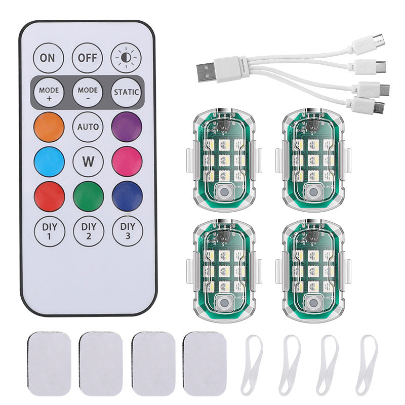 Package Includes:1*18/3-key Remote Control, 1/2/4* Lights,