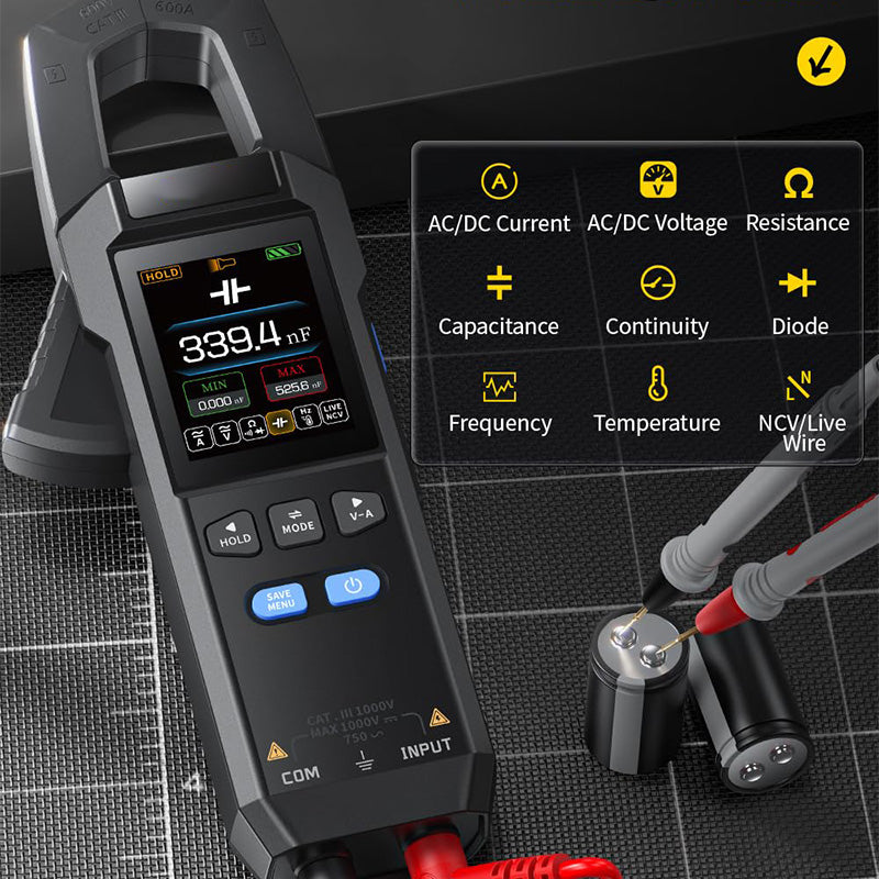 10000 COUNTS CLAMP METER: It is a 10,000-count highly-precisive intelligent clamp meter, covering 750V voltage and 600A current ultra-wide range, whether it is engineering maintenance, laboratory research, or vehicle overhaul, home electrical diagnostics, can be easy to handle.