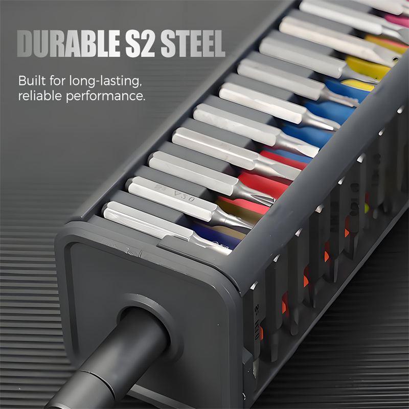 PREMIUM S2 STEEL BITS - Crafted from high-hardness S2 tool steel, each bit offers exceptional durability and resistance to wear. This ensures precise engagement with screws, preventing stripping and guaranteeing reliable performance for long-term use.