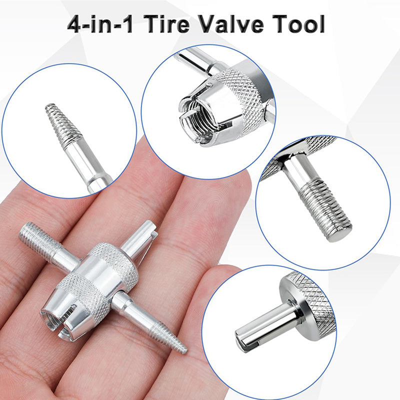 MULTIFUNCTIONAL DESIGN: Designed with a practical and efficient 4-in-1 structure, this tool easily supports valve core removal, rod pulling, tire deflation, and other essential tire-related tasks.