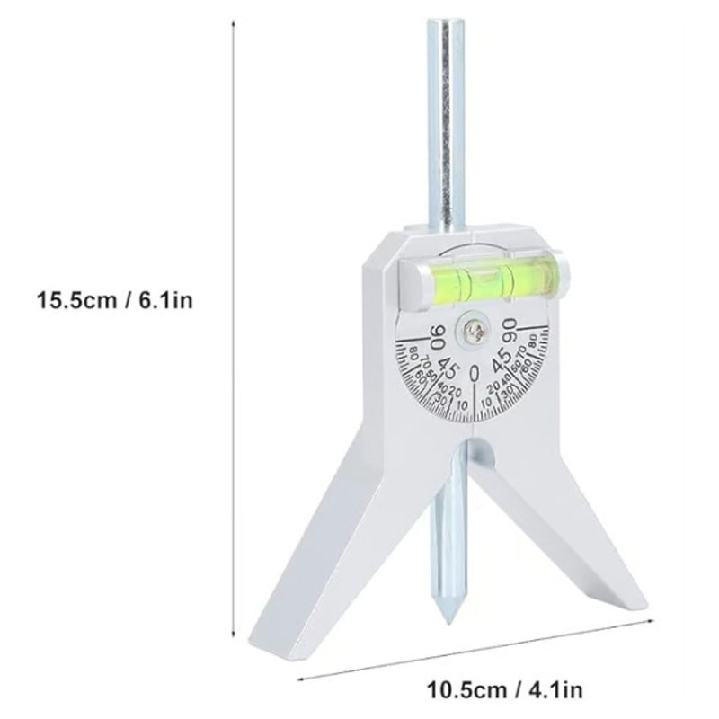 Y-TYPE BASE WITH BUBBLE PROTRACTOR – Features a stable four-leg Y design and an integrated bubble level dial for easy, accurate angle and level measurements on round surfaces.